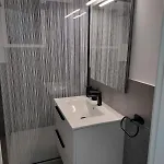 Dieses Apartment verfügt über ein Badezimmer mit einem Haartrockner und Handtüchern. Außerdem gibt es eine getrennte Toilette und eine Dusche usw.